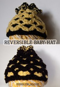 This hat is going to be a big hit next football season! Not only will it keep babys head warm, but the reversible nature makes it two hats in one. The designer gives directions about how to make larger sizes, so show your team spirit by making enough for the whole family. Theres also a print or .pdf option at the bottom of the page.