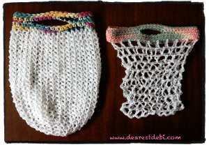 Not one, but two Beginner Market Bags are included in the crochet instructions. If you're tired of using and throwing out plastic bags or paper bags then make your own crocheted bags. Haul your fruits and veggies in this reusable bag made by you. Use lace or worsted weight yarn depending on which bag you want to make.