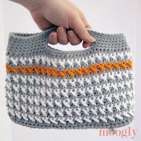 Eeeeew! This Manchester Handbag is just the right size! I have big totes and little clutches but nothing in this size range. It will be perfect for everyday! I love the thought of it being an everyday bag. It's cool that they offer a sunglasses case to go along side. I will however change up the color combination to make it my own. I think I'll substitute indigo for the orangesicle color so that it coordinates with most of my wardrobe colors. I love the Moogly website too! They have links in all the appropriate places and great video tutorials.