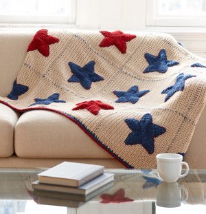 Somebody must have been reading my thoughts lately! I've been thinking that I need a cotton afghan for my patriotic decor during the summertime in the house. This will fit the bill quite nicely! This would also be perfect to use as I sit on my front porch to watch the local firework show on Fourth of July. The stars add a perfect patriotic bit of texture to the overall effect!