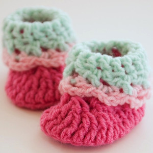 Love these booties! Love the color combination. This pair matches with the pink and blue bonnet I commented on earlier. Here's the link to the pattern http//www.mooglyblog.com/loopy-love-newborn-baby-b == ooties/. Can't wait to do this!
