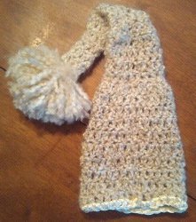 This North Pole elf hat is too cute. Instructions given for newborn size and seemingly adaptable to child or adult size. The soft cream color yarn used is lovely however I believe I would use a red color for the hat and white yarn for the pom pom.