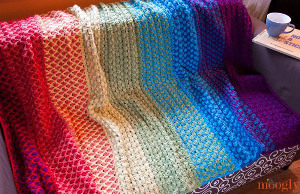 Another beautiful and very colorful afghan. They are all so lovely that I dont know which one I want to make first. Vannas Choice yarn is a very nice and dependable yarn. I enjoy working with it. The way this afghan is worked up makes it look just like a rainbow. This is truly an amazing blanket.