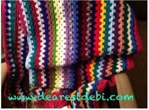 I love the colors,i startet one similar 2 years ago,but put it away,now I think ill get it out and get going on it fall&winter,time for indors hobbies thanks for shoving it when I get done ill send a picture,,sincerely BODIL ARNOLD.i am double crochet 120 stitches 2 rows of each colers,, again thanks..