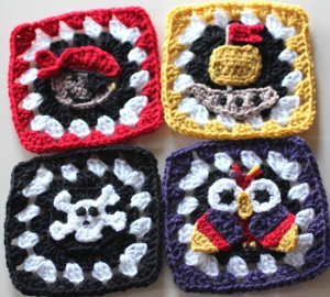 These Pirate Granny Squares "arrrr" great for those into pirates, ships and skeletons. The crochet instructions provided are for four different squares. Once they're complete you can join them for an amazing blanket or crochet afghan.