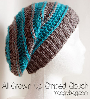 Slouchy hats are becoming increasingly trendy this year and, as always when things become a trend, they become a bigger expense too. Save a few bucks by crocheting your own from this free slouchy hat pattern. This adorable All Grown Up Slouchy Hat is available in child and adult sizes at the link and uses two colors of worsted weight yarn. Instructions are included in this free crochet pattern for a matching pair of arm warmers, which would make a splendid gift.