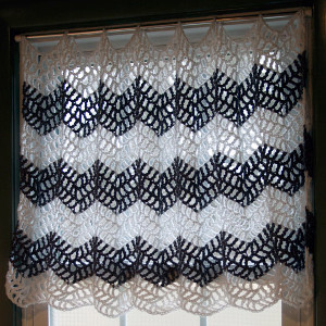 Patterned in a cafe style, these Chevron Crochet Curtains can be worked up and tweaked for your use over any sized window. The crochet curtain pattern has a lacy feel that lets some light in while still giving you that privacy you need. Learn how to make curtains so you can cover every room in your house from the living and bed rooms to the bathroom and kitchen. You can use any colors you want or stick with classic black and white.