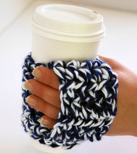 Now this is a really, really clever idea! A cup cozy with a built in hand slide! Now no matter how many people bump into me between the coffee bar and my favorite table, no chance of dropping my cup now! Using bulky yarn and a size N hook, this works up in a matter of minutes. These would make great bazaar sellers, too!