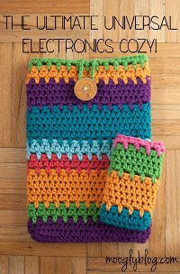 Trust MooglyBlog to come up with this clever idea. I love the striped motif, too. You not only have something useful, but its a great way to use up those ends of skeins we all have lying around. No guessing the measurements either as you size your project when you start. If you have more than one device, why not make a matching set for yourself or your favorite gadgeteer?