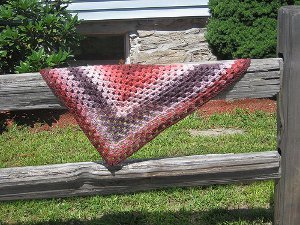 This loosely crocheted Half Granny Square Shawl drapes nicely over a chair or banister. This design was hand-dyed, but feel free to design your own crochet pattern using any yarn size you prefer.