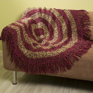 Throw a Bullseye with one of the most unique crochet blanket patterns. The fringe edging and bullseye pattern make this a really fun crochet blanket for you to work up. The Cherry Spot and Cheetah Premier Yarns make an interesting contrast of colors that could match practically any living room area. Blankets don't just have to be there to keep you warm and cozy- they can also be fun crochet projects that look neat around the house, too!