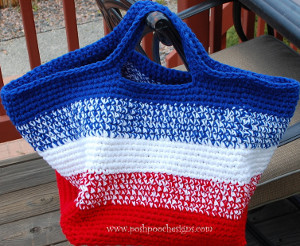I love the look of this market bag! Like most bags meant to be functional rather than just decorative, this pattern calls for doubling the yarn. Thats what gives the tweed sections their distinctive look. The pattern is easy to follow and well illustrated with step by step photos. You dont have to stick with the patriotic themethis bag would look great worked up in lots of different colors.