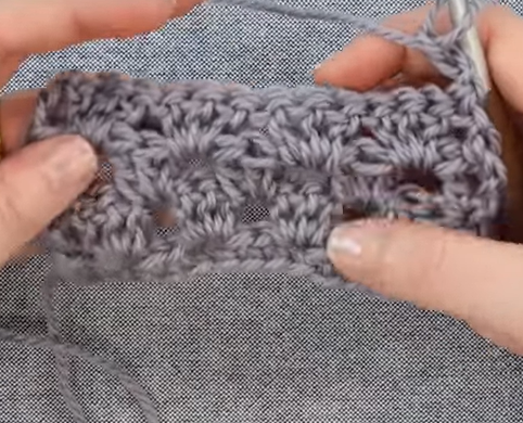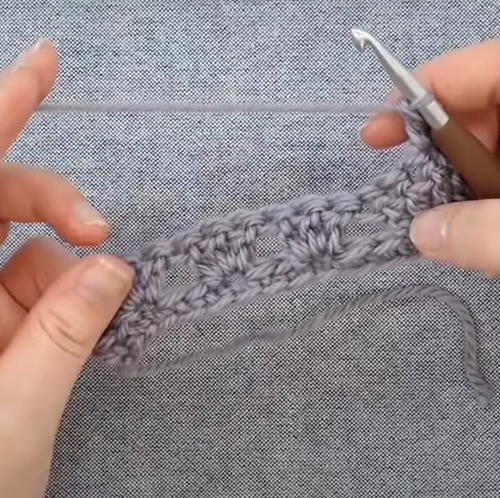 Row 2: Ch 3, sk 1, 3 dc in next st, * sk 2 sts, 3 dc in next st, repeat until 2 sts remain, sk 1 st, dc in last st.
