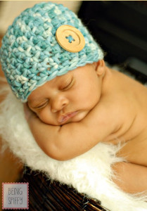Your baby is going to look absolutely adorable in this Button Baby Beanie. It's made with bulky yarn to be soft and have some cushion while keeping your baby's head warm for winter. It's so important to keep newborns especially comfortable, which is exactly what this crochet baby beanie pattern does for you. The best part is that you only need a button and one skein of yarn to complete this crochet baby hat.