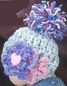 Make your baby hats fun by adding a pom pom to the top. This Chunky Flowers Baby Hat uses chunky yarn for the perfect warmth in winter. The crochet baby hat fits newborn to three months.