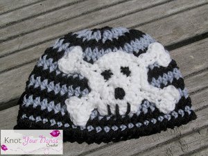 What punk rock? This is a PIRATE hat! I love the grey and black color scheme, and I may make some with a touch of red, too. I will absolutely be using that skull and bones appliqu many other places as well. Thats the first part of this project that I worked up. Great pattern, and a .pdf download, too.