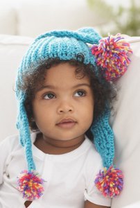 Multicolored pompoms make this cute crocheted hat perfect for any baby. The pattern directions for the Tutti Frutti Toddler Hat are written to fit a 12 month old, but could easily be adjusted for other ages. Four different colors of worsted weight yarn are needed to complete this free crochet pattern. It is worked in the round and the pompoms are tied on once the hat is crocheted. It measures approximately 16 inches in circumference and 10 inches tall, not including the ear flaps. *Thanks to user falascok 5952827 for helping us name this pattern!