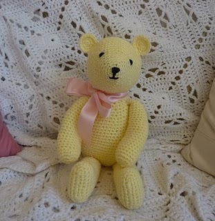 I don't know why teddy bears became such popular items for kids but I am glad that I can find do many wonderful patterns of them. I always made a teddy like this for each of my grand kids. Mine was always the first one they received. And two still have theirs. She took it to college with her. Lol