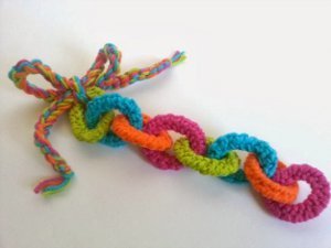 I dont have any teething babies handy right now (all the grands are either too young or too old), but I know a very spoiled pair of quaker parrots who are going to just love these! I make a lot of the Fids (feathered kids) toys from recycled materials. They love to tear cotton stringy-things apart, and they already play with plastic chains. I might make some for the lovebirds, too.