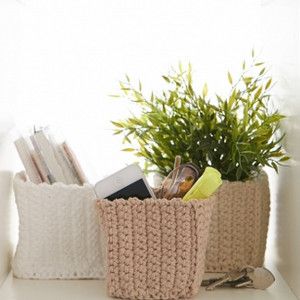 A year later and these are holding up great! I use them to hold my makeup tools and favorite lotions. Thanks for the free crochet pattern - I've made another set for a friend, too!