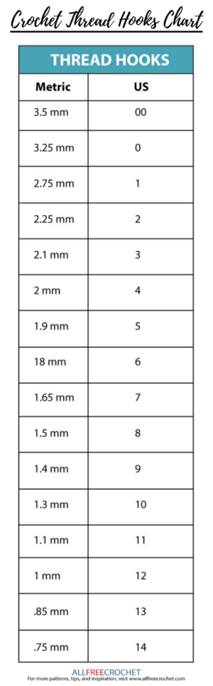 Crochet Thread Hook Size Chart