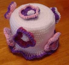 A Flowered Bath Tissue Cover like this one is so pretty that it will spruce up your bathroom in no time. The free crochet pattern is worked in rounds using single crochet, double crochet and half double crochet. The flowers really are the perfect embellishment for the tissue cover.