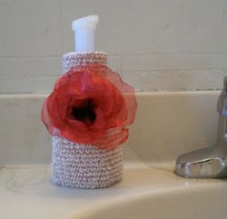 Dress up your soap bottles with this free crochet pattern. Use any color cotton yarn to create this cute Soap Bottle Cover. It's a great way to hide the unattractive labels on the plastic bottles. Add a flower for added aesthetic appeal (optional).