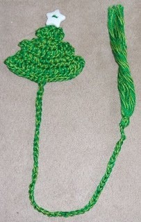 Get ready for the holiday season with a fun Christmas tree bookmark. Dive into a good book and don't be afraid to lose your page. This crochet bookmark will hold it for you. A novelty star button tops it off.