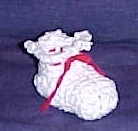 A size G crochet hook and Chenille Sensations yarn allow you to make these cute baby booties. You can add finishing touches with a different colored tie string.