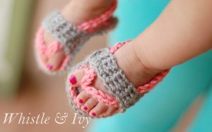 Crochet these adorable Baby Flip Flops so you and your little one can wear matching footwear all summer long. Not only are these crochet shoes cute, but they are also practical because they will actually stay on for quite some time, unlike some other crocheted sandals. Pink and grey worsted weight yarn is used, but feel free to mix up the colors depending on the baby's personal style. You could even use grey and blue if you're making this free crochet pattern for a boy.