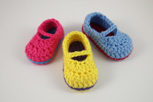 How adorable these "Sweet Baby Mary Janes" will be for your little one, a pair for each day of the week! I love that idea! I love the Caron Simply Soft- what a great choice for these baby booties. There are so many deeply saturated colors in lieu of the classic pastels. Please try an outside the box color! You won't be sorry. I just love how the sole is made in one color and the shoe itself is in a contrasting color. Great design and an easy one, too.