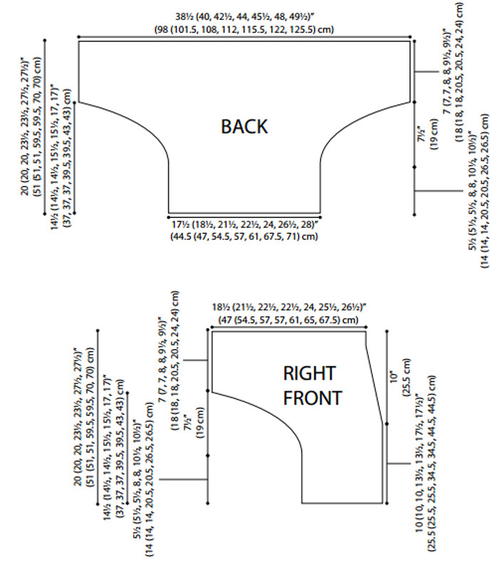 Notes1. Cardigan is worked in three pieces: Back, Right Front, and Left Front.