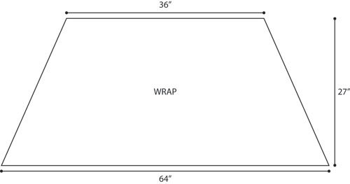 Wrap measures approximately 64"/162.5cm across (at widest), 36"/91.5cm across (at narrowest), and 27"/68.5cm tall.