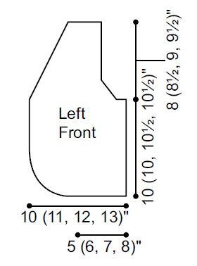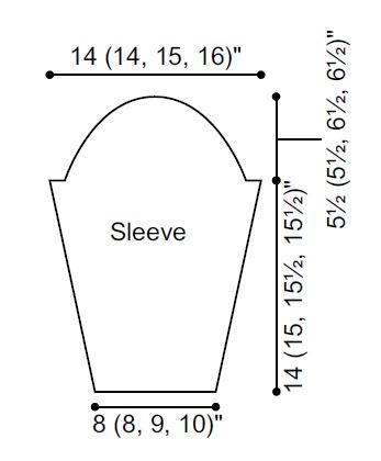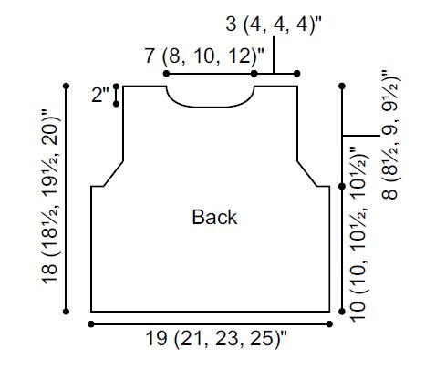 Finished SizeFinished Chest: 39 (43, 47, 51)” Finished Length: 18 (18½, 19½, 20)”