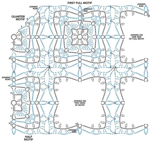 - Motifs are joined together while working last round or row using a join-as-you-go technique. Review the assembly diagram for motif placement and to determine the correct sided join for each motif to its neighboring motif.