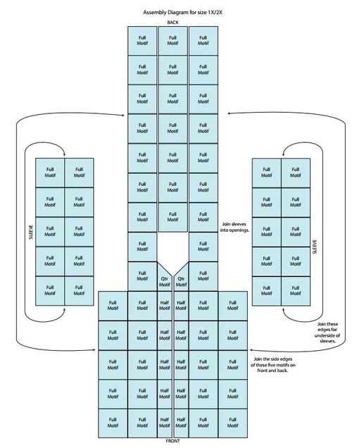 - Duster is made from full motifs, half motifs, and quarter motifs.