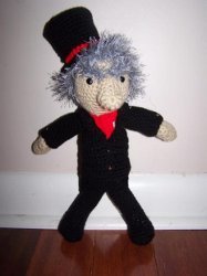 Just in time for the holidays you can crochet this scrooge. He'll look great in your front door hallway to great all your guests. He also makes for a great gift.