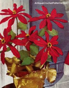 These flowers look fairly real, but I think the way theyre presented, they look on the spindly side. It could be thats what poinsettias looked like when the pattern was created. Now were used to seeing bushier versions. In addition, the pattern calls for using #10 steel hooks. Too small for me, but I may work up one in a size E hook. Shouldnt be that much difference in size.