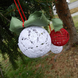 When I first saw this pattern on offer, I was intrigued by how the author managed to get the ball shape without using a pre-made form. I thought it might have been a balloon (Ive made the sugar dipped string ornaments before), and sure enough, I was right! What did surprise me was that it was done in two pieces crocheted together rather than using decreasing stitches. This does make it a prettier and more even ball.