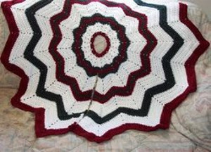 When I first started crocheting years ago, I loved making afghans similar to these. I love working from the center and seeing it grow with each round. This type of pattern works up quickly.and I love the colors and the stripes of this tree skirt.it would look nice in anyone's home.