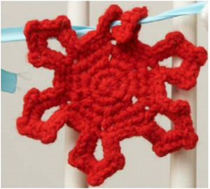 I really like this snowflake garland. The instructions indicate the individual snowflakes should be a nice size when finished. I plan to make mine all in white sparkle yarn and use a red ribbon to string them all together. I imagine the snowflakes can also be used separately as package decorations.