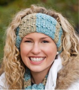 Headband Stripe Sequence: For 18½” (20”) headband, work 9 (12) rows with A, 3 rows with B, 3 rows with A, 3 rows with B, 9 rows with A, 9 rows with B, 9 rows with A, 3 rows with B, 3 rows with A, 3 rows with B, 9 (12) rows with A.