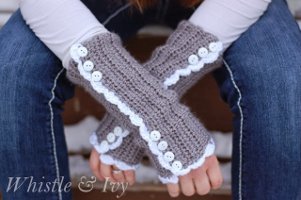 I love the look of these vintage inspired arm warmers. I have found this style of arm warmer to be more useful than true fingerless gloves when working in a chilly office environment. The tutorial is very easy to follow and it seems that the arm warmers would crochet up quickly. The additional of buttons is a nice touch.