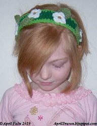 Keep that hair out of your face with this flower headband. The green trim makes the flowers look nice and bold, of course you can use other colors of your liking. 100% Acrylic Worsted Weight is used.