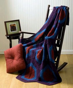 Using two crochet hooks, a size I and J, along with Caron International's Simply Soft Eco, you can make this great looking geometric crochet afghan. 17 interlocking hexagons in beautiful jewel tones make this a gorgeous one.