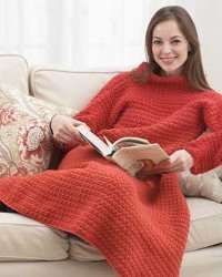 You can cuddle up on the couch while still having the ability to read a book. This afghan with sleeves is a great afghan pattern. It calls for an I/9 crochet hook and medium worsted weight yarn.