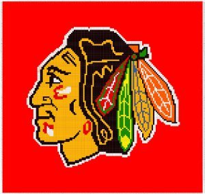 Show your love for Chicago's favorite hockey team with this Blackhawk Afghan. This free crochet afghan pattern is made using a crochet chart and worsted weight yarn. It's a perfect homemade gift idea for the hockey fan in your life. This crochet blanket will definitely keep you warm whether you're cheering on the Hawks from the stands or on your couch. The graph measures 149 squares wide and 135 squares long. You'll definitely want to learn how to crochet a blanket with this one. Go Hawks!
