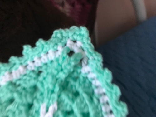 I did 4 rounds in mint and 1 in color for a total of 6 rounds of green, 5 of white for size 34” square with edging.