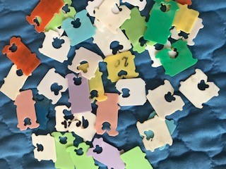 To make it easier, after each round of white, I laddered up and held the rungs in place with stitch holders (*the tabs that come off bread - they can easily be written on when you are doing a large project and need to keep a count of what row you are on)