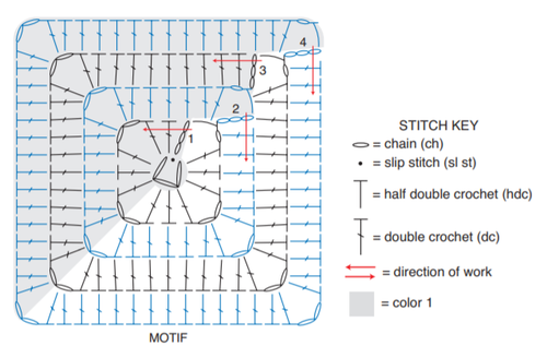 Crochet Gauge12 dc and 7 rows = 4" [10 cm]. Motif = 5" [12.5 cm] square.